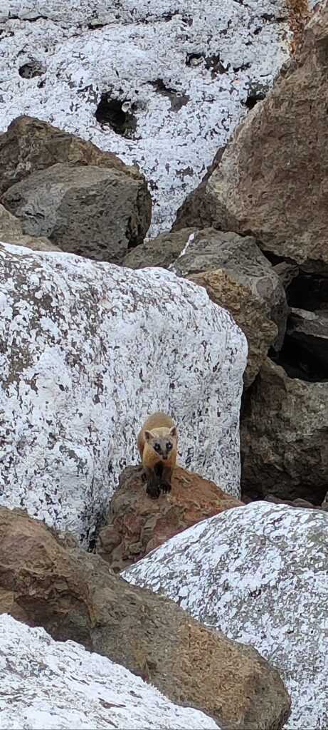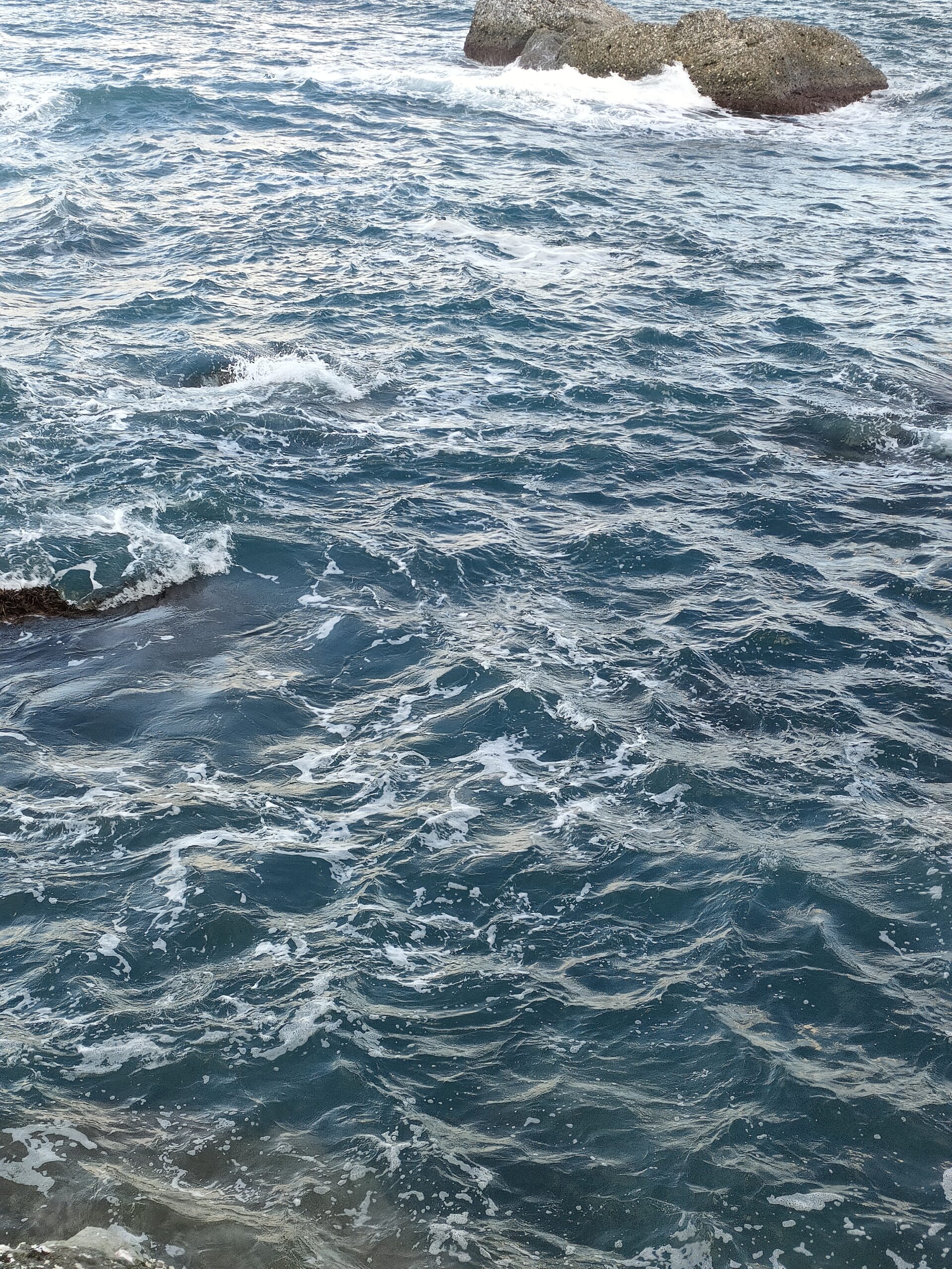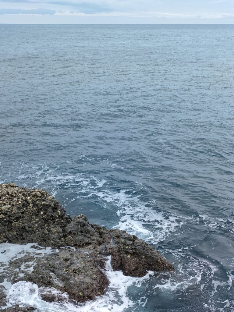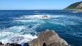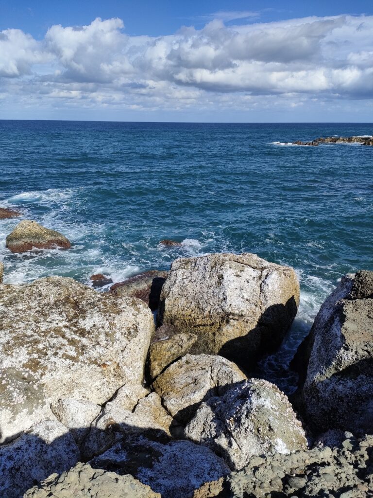 天気予報が変わり翌日の天気が怪しくなってきたので、1泊の予定を切り上げて、今日は一日中釣りをすることに方針転換。昨年の同じ時期にヒラマサがよく釣れたポイントに向かう。波高がやや高く足場が波をかぶっていて、さらに濁りが強い。湾内の河川自体は濁っていないのだが、湾内のサーフから磯伝いに濁りが留まっている。隆起したことで水深が浅くなり、底の泥が巻き上げられやすくなったのか、原因はわからないが、濁りやすくなったように感じる。ここでは竿を出すことなく移動する。