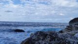 次に強めのジャークで泡を発生させ、泡の中にルアーを漂わすようにしばらく滞在させる。するとまた数回連続でバイトし、今度はフッキングする。65cmほどのガンドをキャッチ。その後、フクラギもキャッチ。その後も、魚のボイルがたまに発生する。足元には、小魚が沢山泳いでおり、その中にはフクラギもたまに通過していくのが見える。驚いたのは、大型のアオリイカが3匹磯際を泳いでいくのを目撃。あいにく餌木は持ってきていなかった。